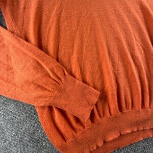 Stylish V-neck sweater by Sid Mashburn. Vibrant orange color. Perfect for layering.
