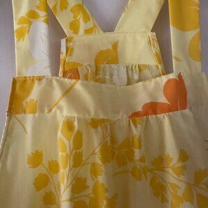 Side Eye Bird Butterfly Trapeze Pinafore Top OS Vintage Sheet Fabric Yellow