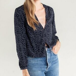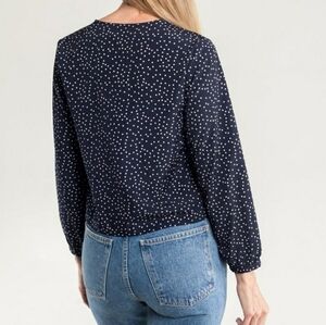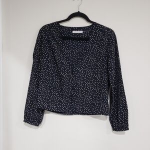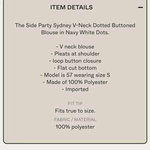 Side Party Sydney V Neck Dotted Buttoned Blouse Navy Blue and White Size Medium