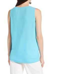A fluid-draping crepe top in a wardrobe of colors and prints gets its chic and easy shape from drawstrings ruching the side.