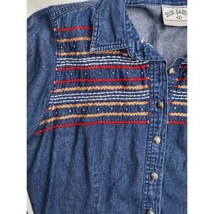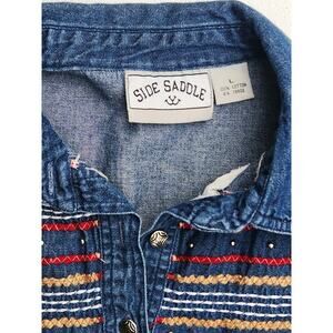 Side Saddle Cropped Button Down Womens L Western Cowgirl Thin Fabric Studded VTG