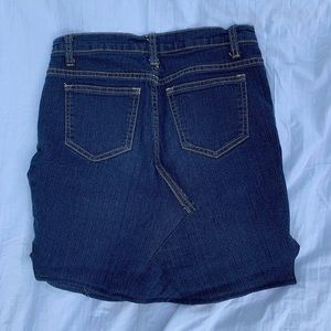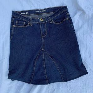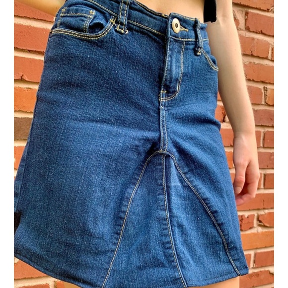 Upcycled High Waisted Denim Skirt Measurements Waist: 30.5" Length: 17"