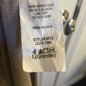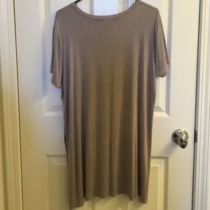 Taupe flowy side-slit top. Slits go up to about the waist. Lightly worn, good condition. One small pin hole at the bottom back (pictured), but not noticeable until close inspection.