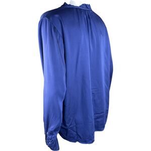 Side Stitch Button Down Top with Ruffle Neck Saphhire Stone Medium NWOT