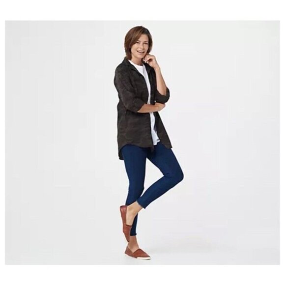 Elevate your wardrobe with the Side Stitch Tunic, a versatile piece that blends comfort with style. The roll tab sleeves and collared neckline add a touch of sophistication, while the camo print brings a bold edge to your ensemble. Perfect for various occasions, this tunic is a go-to for casual outings, cocktail parties, or when you're out traveling.