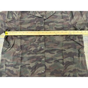 Side Stitch Button Front Tunic With Roll Tab Sleeve Camo Print Size S A381343