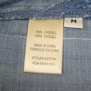 Side Stitch Chambray Button Front Tunic Roll-Tab Sleeve Women's M Silver Stripe