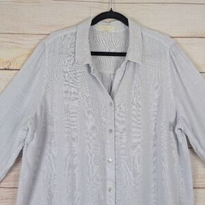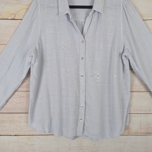 Side Stitch Los Angeles Women's Size Large Split Neck Button Up Light Blue Pink Textured Stripe Shirt