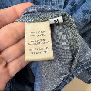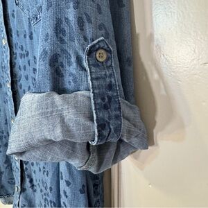 Side Stitch Lyocell Button Front Tunic with Roll Tab Sleeve Animal Print size M
