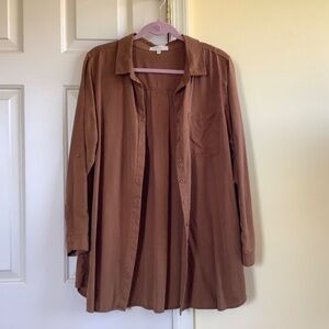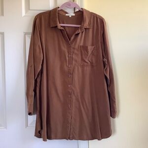 Side Stitch Petite Button Front Lyocell Tunic with Pocket Copper SZ PL