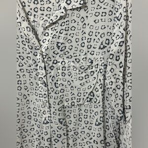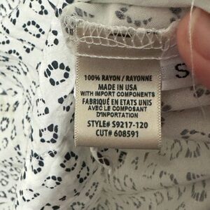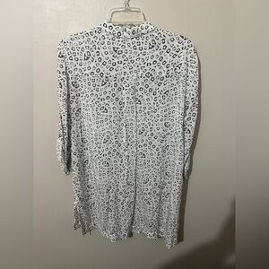 Animal print style top. Rayon. Roll tab sleeve. All the buttons are attached but one in particular may need to eventually need to be re-secured. See pics.
