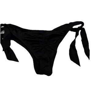 Side Tie Bikini Bottom Black Cheeky Ruched Back Minimalist Swim Small Beachwear