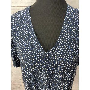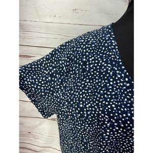 Side stitch womens blue polka dot hi low Blouse Size Large