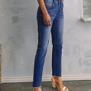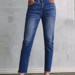 Brand New Sidefeel Women's High Waisted Jeans Strechy Raw Hem Straight Leg Denim Pants with Pockets size 10