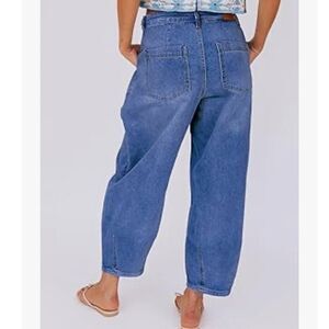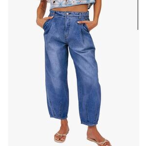 Sidefeel Womens Mid Rise Tapered Wide Leg Stretch Baggy Denim Jeans Size S NWOT