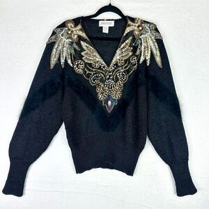 Sideffects Vintage Beaded Sequins Angora Lambswool Blend Sweater Size Large