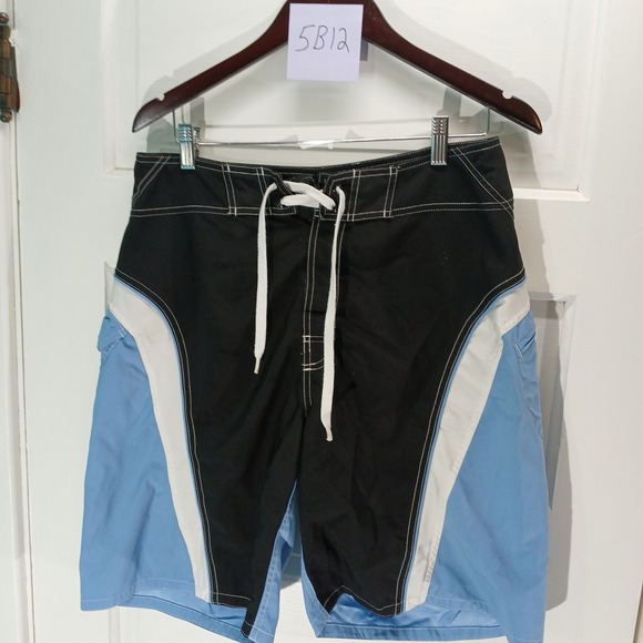 Sideout Mens Swim Trunks Black Blue White Drawstring Board Shorts size M