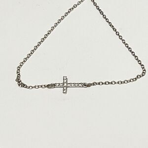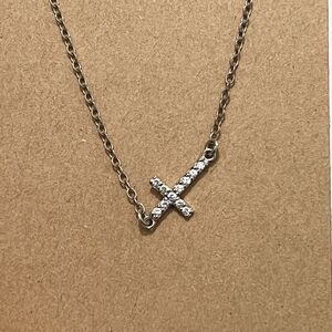 Sideways Cross 925 Silver CZ Lisa Lorna Faith Religious Hope Christian Catholic