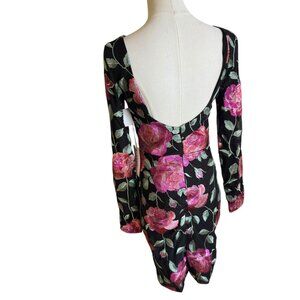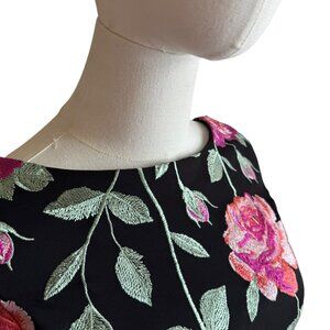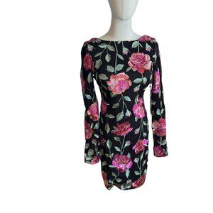 Siena Black Pink Rose Embroidered Long Sleeve Mini Dress Size 4 NWT