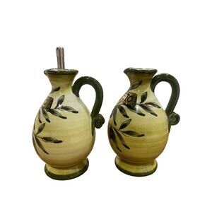 Siena Italian Ceramic Art Pottery Oil & Vinegar Cruet Set Hand Painted Olive Des