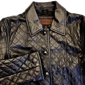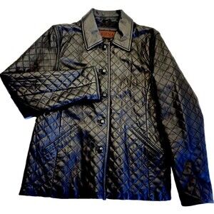 Siena Quilted Leather Jacket Black Button 12 Women G-III Apparel Preppy Vamp