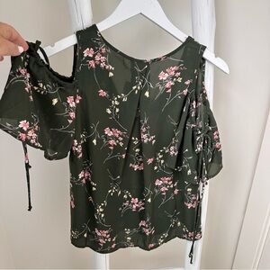 Siena Sky Cold Shoulder Floral Short Sleeve Blouse SZ Small