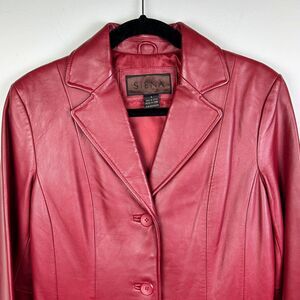 Siena Vintage 90's Red Leather Blazer Button Front Collared Lined Jacket Retro 4