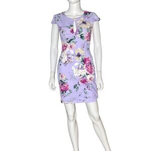 Siena Women's Keyhole Twist-Front Cap-Sleeve Dress Purple Floral Sz 2 NWT