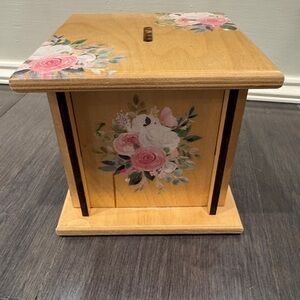 Charming wooden box with floral accents. Features a gold 'S' and pink 'Sienna' text.