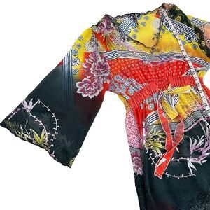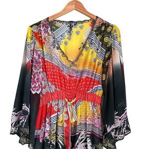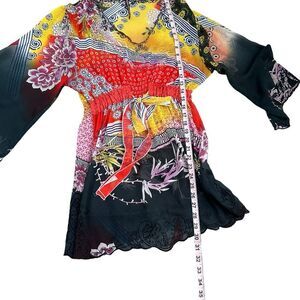 Sienna Rose Women L Sheer Tunic Floral Art Wear Bell Sleeve Coverup Boho Gothic