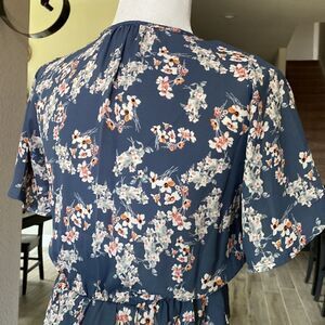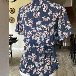 Sienna Sky Blue Foral Wrap Around V Neck Top Short Sleeves XS