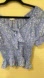 This charming crop top by Sienna Sky features a delightful blue and white color scheme with puff sleeves and a tie front. The smocked waistband and ruffled details add a touch of elegance, making it a perfect choice for a stylish and romantic look.
