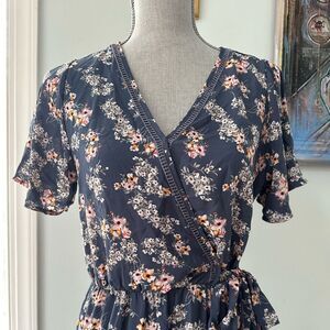 Cute blue floral chiffon wrap dress from Sienna Sky size M, perfect summer boho dress for the beach!