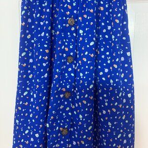 Button down front with elasticized waist. Perfect summer dress. Very lightweight and flowy