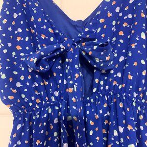New With Tags - Sienna Sky cobalt blue with small geometric pattern sundress is completed lined with a bow tie back and adjustable straps. Size medium