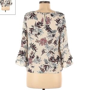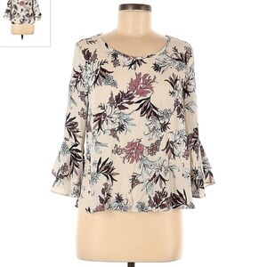 Sienna Sky Cream Floral Layered Bell Sleeve Blouse Women's Small S Keyhole