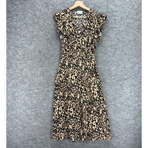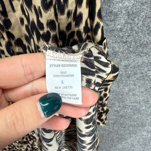 Sienna Sky Dress Women L Large Beige Animal Print Maxi Long V-Neck Short Sleeve