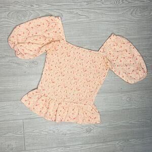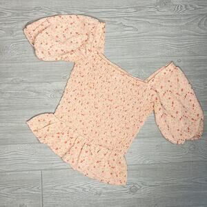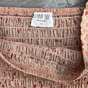 Sienna Sky Floral Pink Ruffle Blouse Crop Top Tiny flowers ruffle sleeves