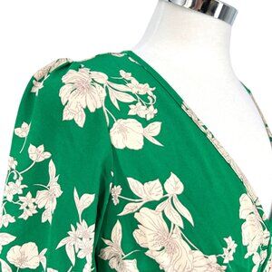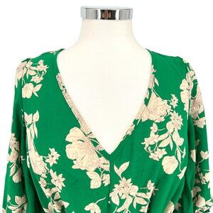 Sienna Sky Floral Wrap V-Neck Blouse Green Biege Size Small