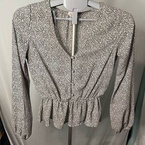 Beautiful, flirty flowy print top. Size x-small. Fits true to size. Brand is Sienna Sky. Covered functional buttons. elastic waist and wrists. Slight bubble sleeve. Pretty sheer! Super cute on. Like new condition.