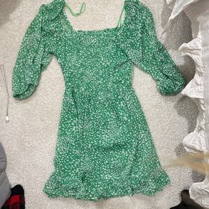 Elegant green dress with delicate white floral accents. Perfect for any occasion.