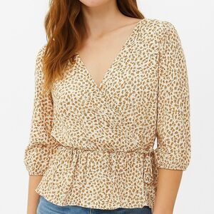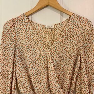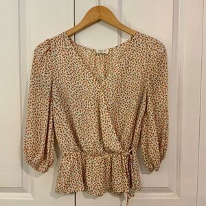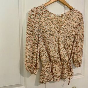 Sienna Sky Ivory Orange Floral Print Peplum V Neck Top Small