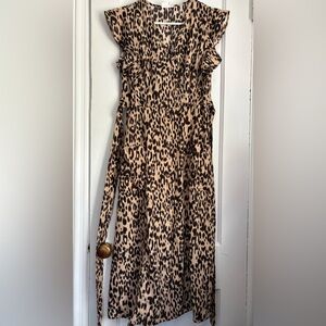Sienna Sky Leopard Cheetah Animal Print Ruffle Sleeves Pull on V Neck Dress, Size:Small