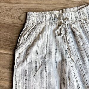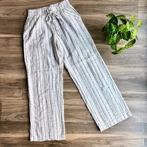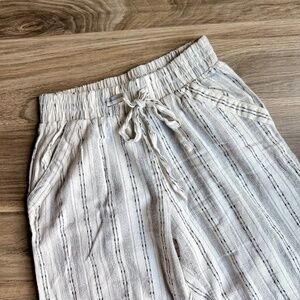 Sienna Sky Linen Blend High Rise Wide Leg Ivory Black Stripe Drawstring Pants S