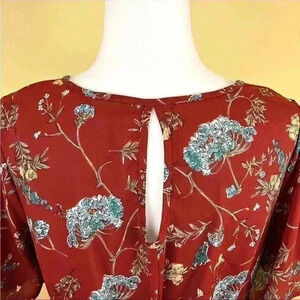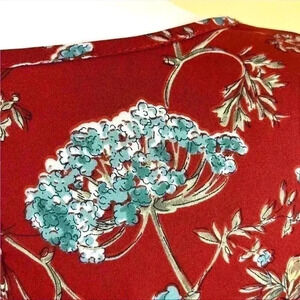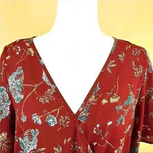 Sienna Sky Maroon Floral V-Neck Faux Wrap Cinch Waist Knotted Back Top Size M