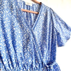 Sienna Sky New Blue White Floral Wrap Blouse Peplum Top Small Cottagecore Y2K