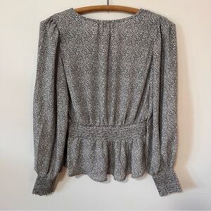 Sienna Sky Peplum Top Size Small Womens Black Cream Animal Print
