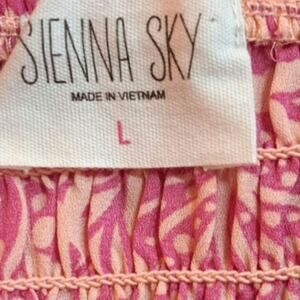 This stunning Sienna Sky pink floral crop top is perfect for adding a feminine touch to your wardrobe. Featuring a flattering V-neck, adjustable straps, and a smocked back for added comfort, it's ideal for casual outings or summer gatherings.