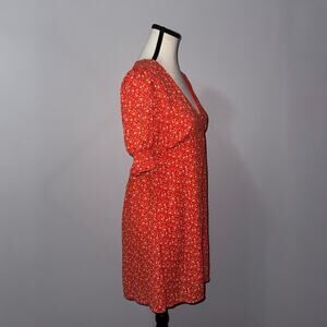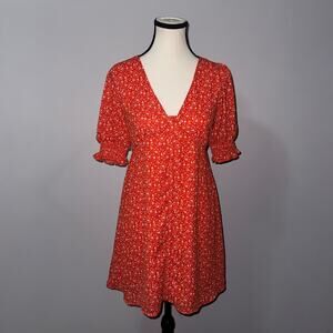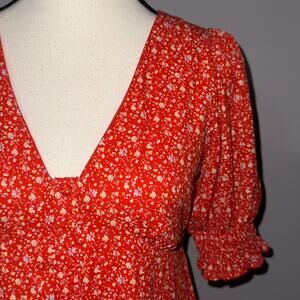 Sienna Sky Red Floral Mini Dress Puff Sleeve Tie Back Women’s XS