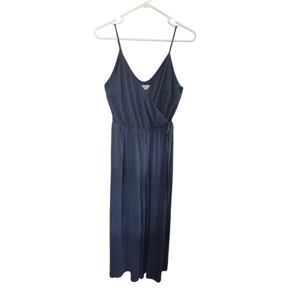 Sienna Sky Slate Blue Spaghetti Strap Wide Leg Cropped Jumpsuit Size M Side tie